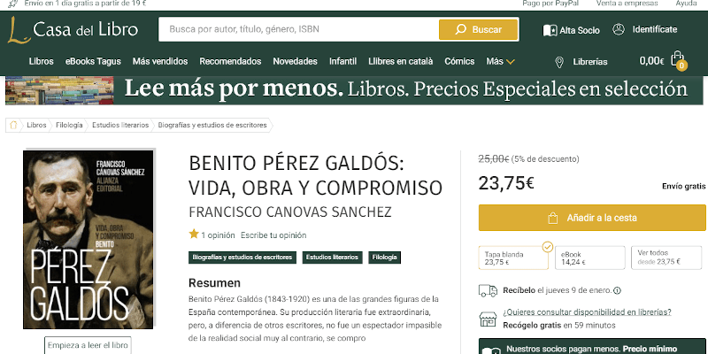 Del mismo modo, y para celebrar el centenario de su fallecimiento, se publica Benito Pérez Galdós. Vida, obra y compromiso, obra del historiador Francisco Cánovas Sánchez que publica en Alianza Editorial.