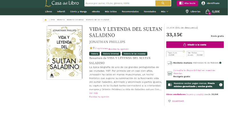 La editorial Ático de los Libros publica Vida y Leyenda del Sultán Saladino, un sesudo ensayo del historiador Jonathan Phillips que versa sobre la vida de Aladino, quizás el caudillo islámico de la época de las Cruzadas más famoso de aquella época, y que ha quedado en el inconsciente colectivo occidental como rey musulmán por excelencia